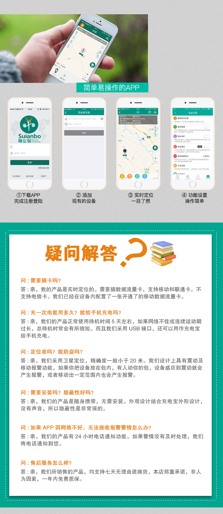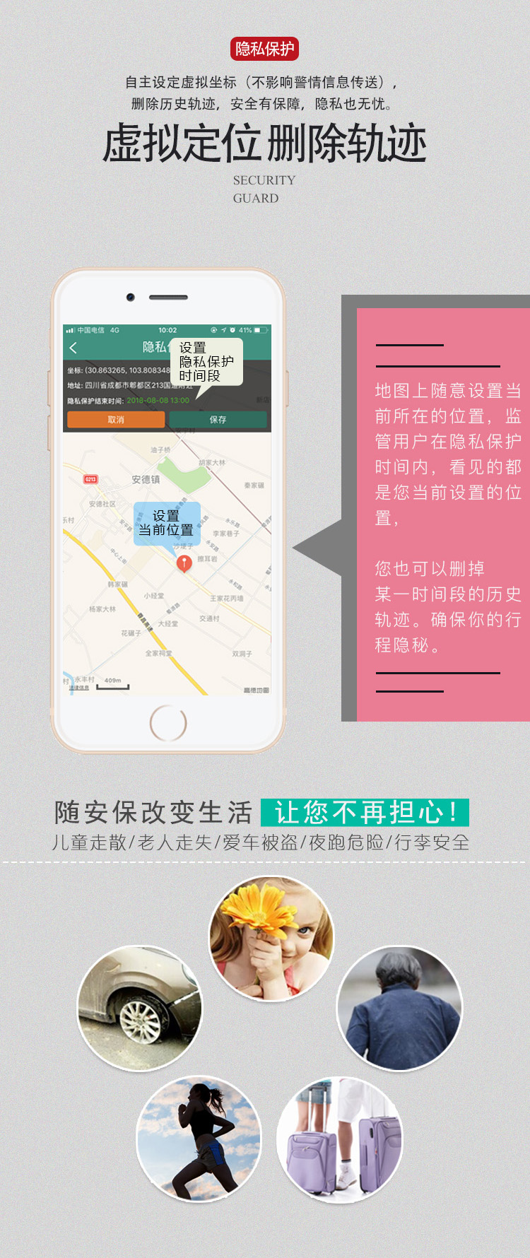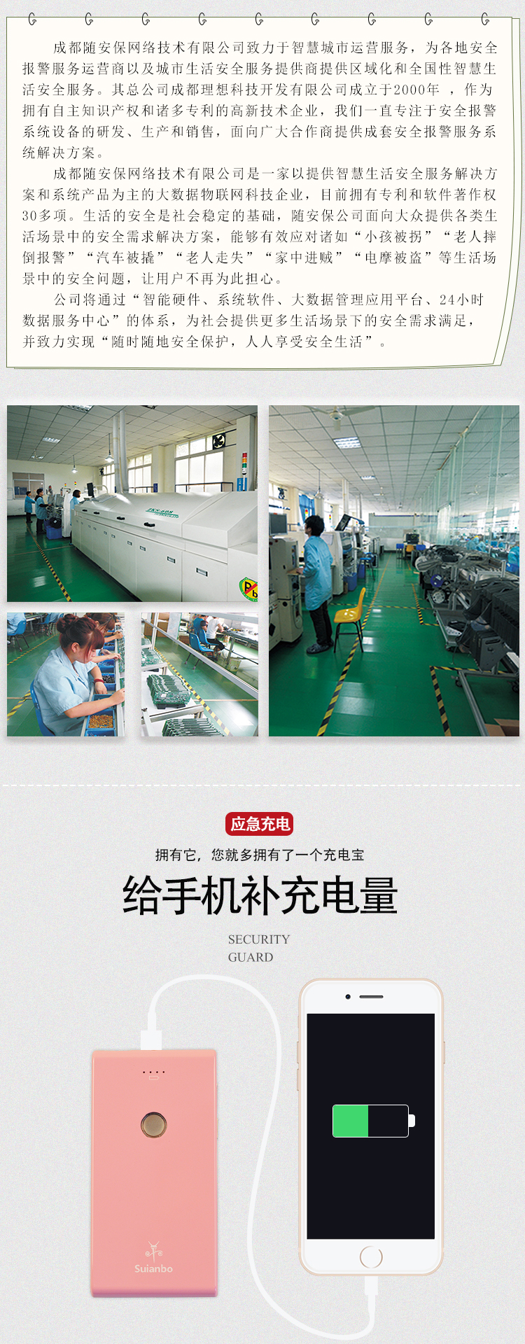 随安保个人安全定位器S2主要针对日常生活场景下的安全应对,除了具有实时北斗/GPS卫星定位追踪、紧急一键报警求助、移动/震动/越界报警、安全隐私保护、应急充电等功能之外,S1还具有广播收音、音乐播放、闹钟提示登功能;S2还具有应急照明的手电筒功能等。现目前S2外观上还为消费者提供了可以根据自己喜好的颜色来选择产品,不会单一,S2是一款多功能综合性安全定位报警设备,能够用于个人定位、应急报警、包袋箱包防盗、贵重物品防盗等。